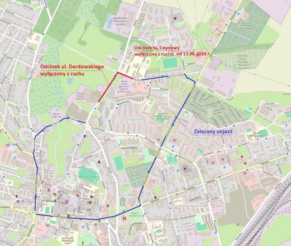 Od 13.06.2024 r. realizowane będą roboty kanalizacyjne w ul. Ceynowy. W związku z tym nastąpi zamknięcie ul. Ceynowy od skrzyżowania z ul. Igielską do skrzyżowania z ul. Portową. Taki stan obowiązywał będzie do dowołania.