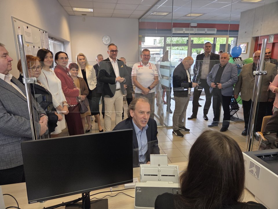 Kiedy tylko doszło do przecięcia wstęgo pojawili się pierwsi klienci. Niektórzy z nich żartowali, że czekali z rejestracją do momentu otwarcia czerskiego biura. Starosta Szczepański miał przygotowane upominki dla pierwszych klientów.