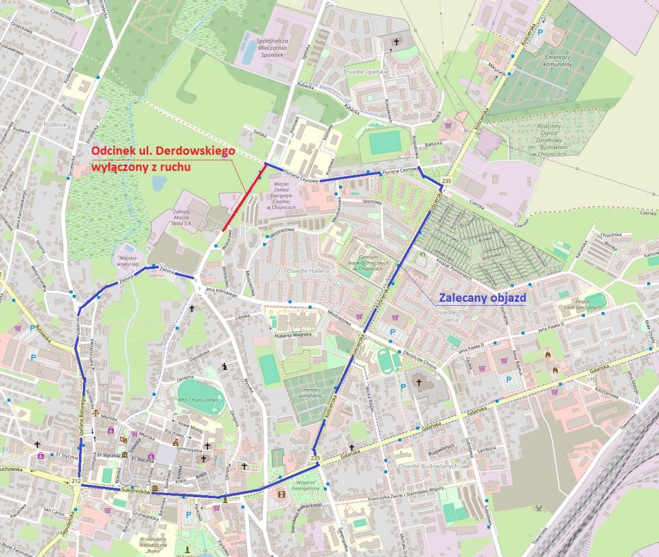 Informujemy, że od poniedziałku 29 kwietnia w związku z rozbudową ulic Derdowskiego, Ceynowy, Rzepakowa w Chojnicach wyłączony z ruchu zostanie odcinek ulicy Derdowskiego. Planowany czas zamknięcia to cztery tygodnie. W kolejnych etapach modernizacji czasowo, zamiennie zamykane będą także inne fragmenty modernizowanych ulic, o czym będziemy informować na bieżąco. Za utrudnienia przepraszamy.