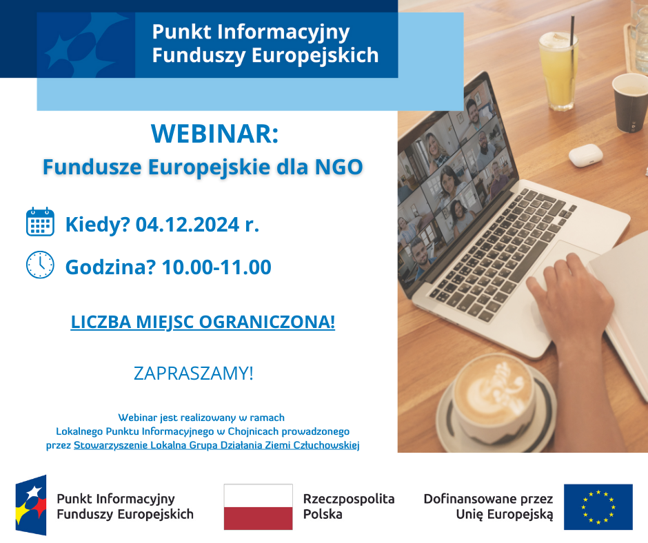 Lokalny Punkt Informacyjny Funduszy Europejskich w Chojnicach zaprasza na bezpłatne webinarium „Fundusze Europejskie dla NGO”