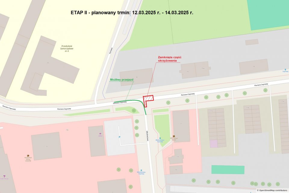 Podyktowane jest to koniecznością wykonania prac nawierzchniowych w obrębie skrzyżowania ulic Ceynowy i Młodzieżowej. Utrudnienia potrwają do 14 marca.
