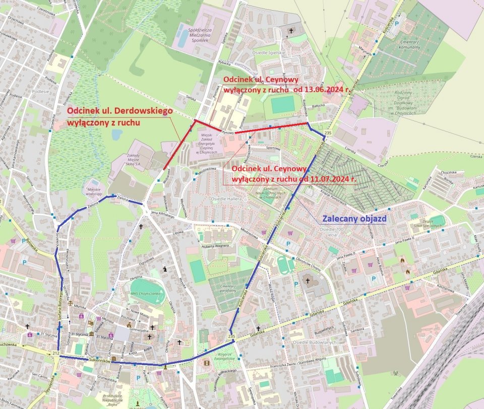 Informujemy, iż w związku z robotami kanalizacyjnymi na ul. Ceynowy od 11 lipca zamknięty dla ruchu zostanie odcinek od skrzyżowania z ul. Portową do skrzyżowania z ul. Rzepakową. Dojazd do SEC i obiektów handlowych będzie możliwy od ul. Igielskiej.